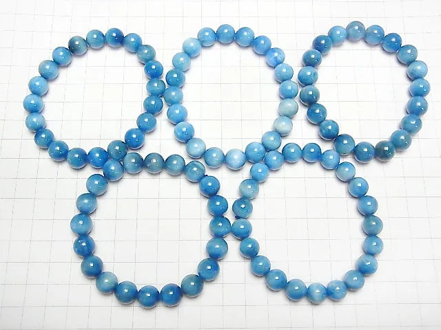 味わい深い姿が魅力のマダガスカル産ブルーアパタイトのラウンドビーズです。鮮やかなブルーの発色に雰囲気良く原石由来の模様が入ります。ゴムの通ったブレスレット形状ですが、ばらしてパーツとしてもお使いいただけます。