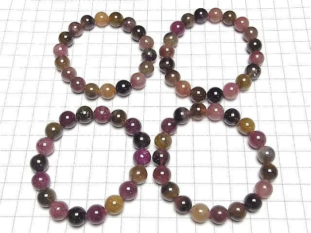 ナイジェリア産トルマリンのラウンドビーズです。深みのある落ち着いた色合いで、マルチカラーの魅力を堪能できるお品です。ゴムの通ったブレスレット形状ですが、ばらしてパーツとしてもお使いいただけます。連ごとに粒のサイズに差があるため、複数連をご注文の際はサイズを混ぜてお送りします。