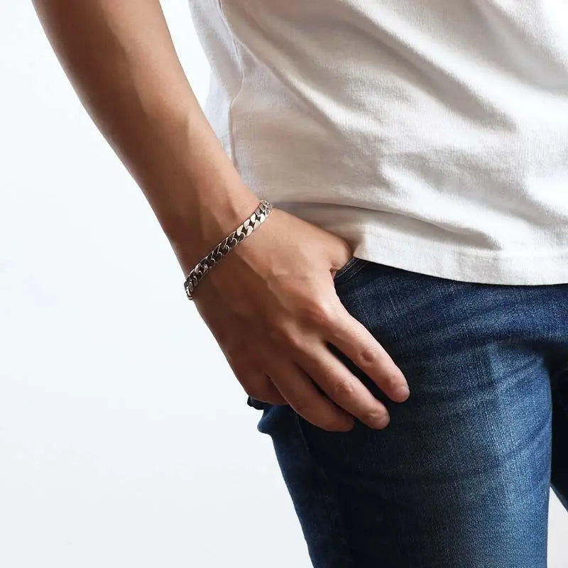 しっかりとした幅と厚みが魅力的な喜平ブレスレット。ーコマーコマ丁寧に仕立てた表面が美しく高級感溢れます。シルバー925の輝きが普段のコーデを格上げしてくれます。