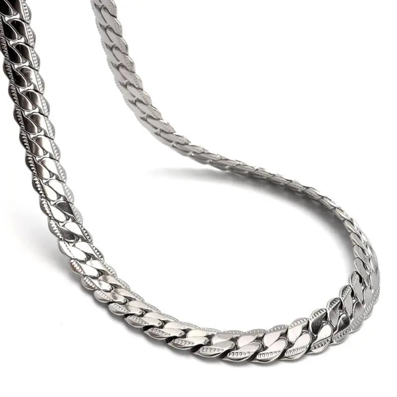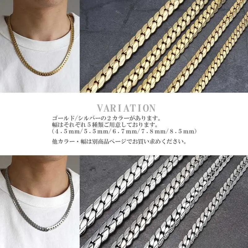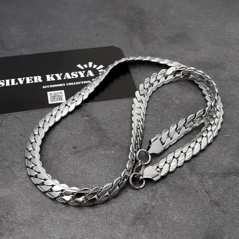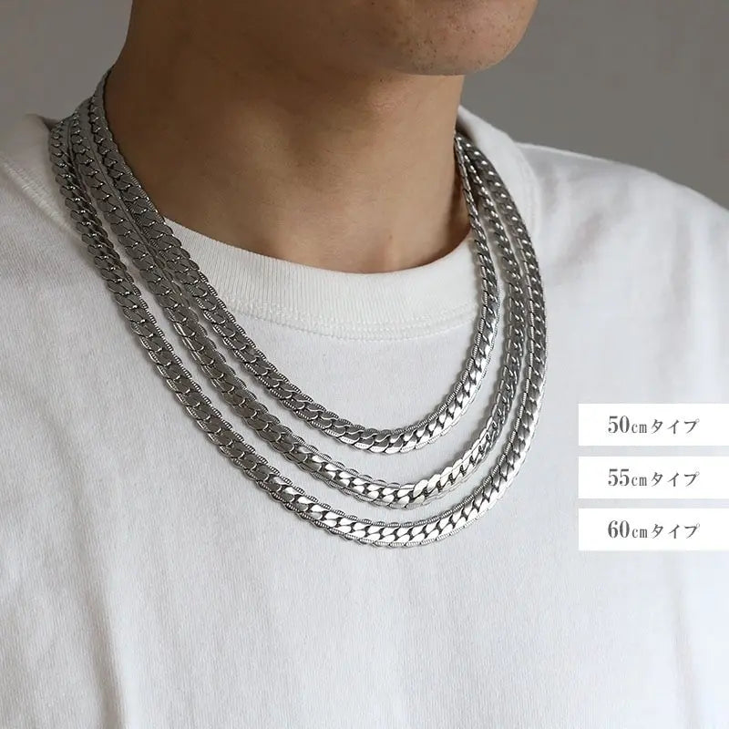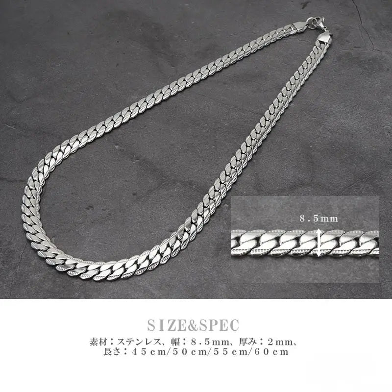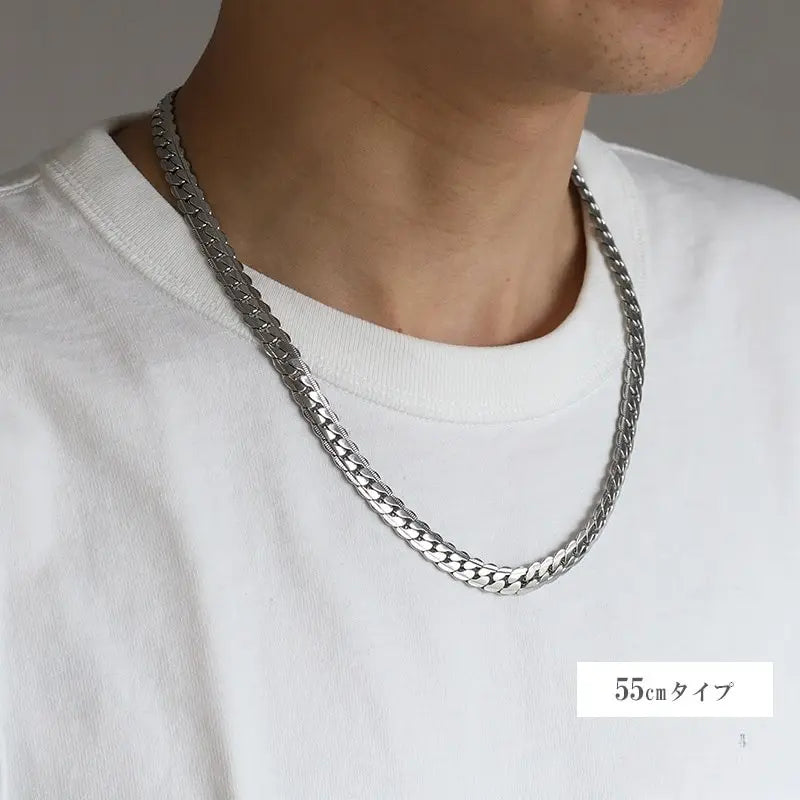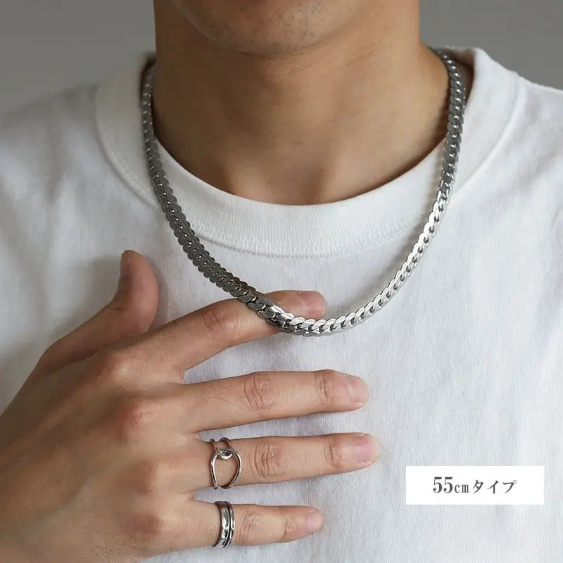 フラットなコマを喜平に繋げたチェーンネックレス。サイドに細かい装飾を施し、贅沢な輝きを放つアイテム。
