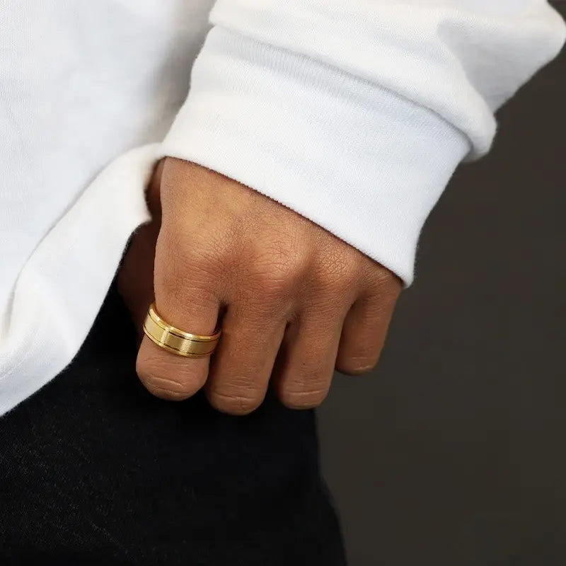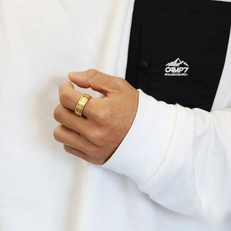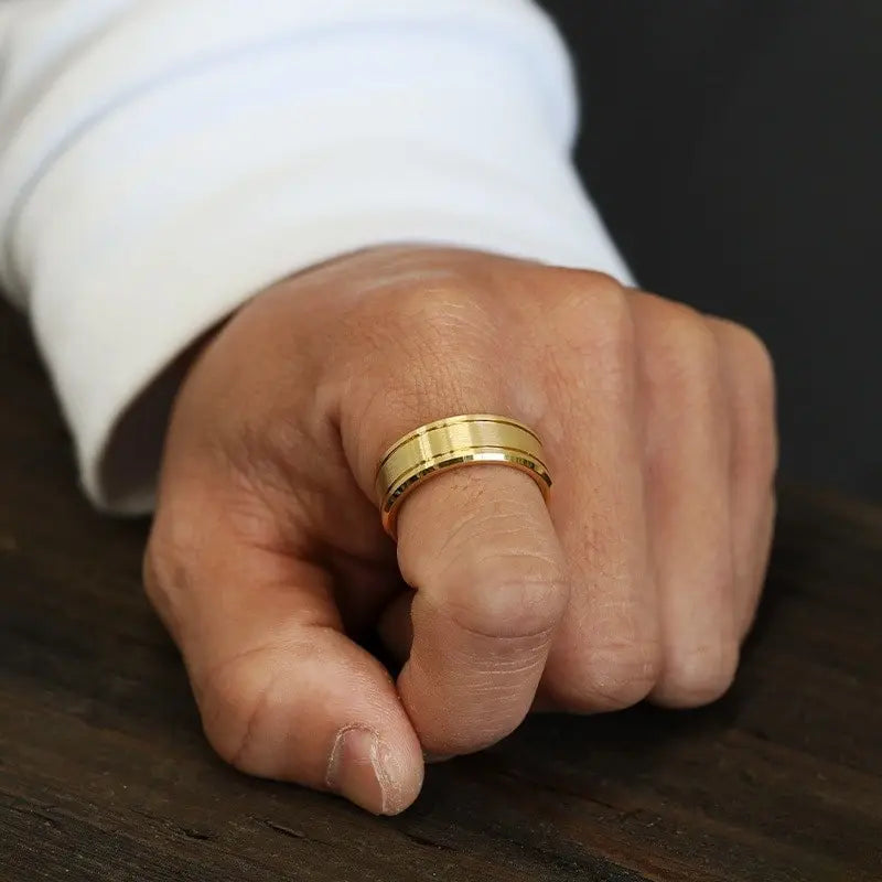 お洒落な2ラインがワンポイントのつや消し加工を施したリング。エッジカットを入れスタイリッシュかつラグジュアリーな仕上がり。