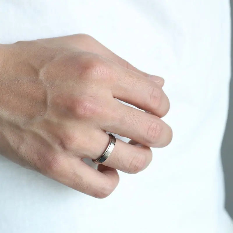シャープなラインが美しい平打ちリング。シンプルなフォルムに両サイドの艶が、さりげないお洒落を演出。普段使いや重ね付けにピッタリ。