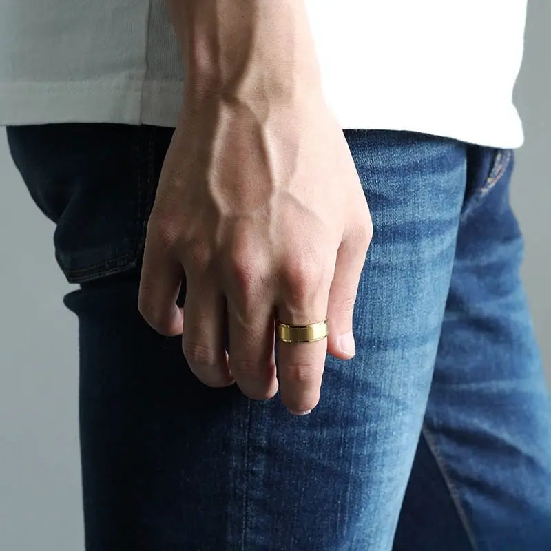 シャープなラインが美しい平打ちリング。シンプルなフォルムに両サイドの艶が、さりげないお洒落を演出。普段使いや重ね付けにピッタリ。