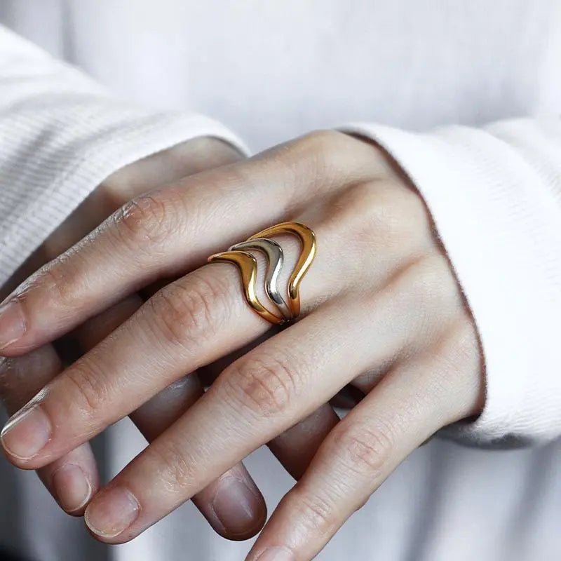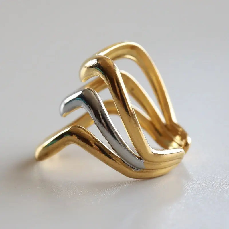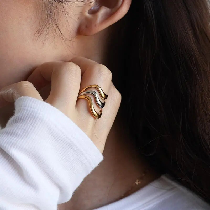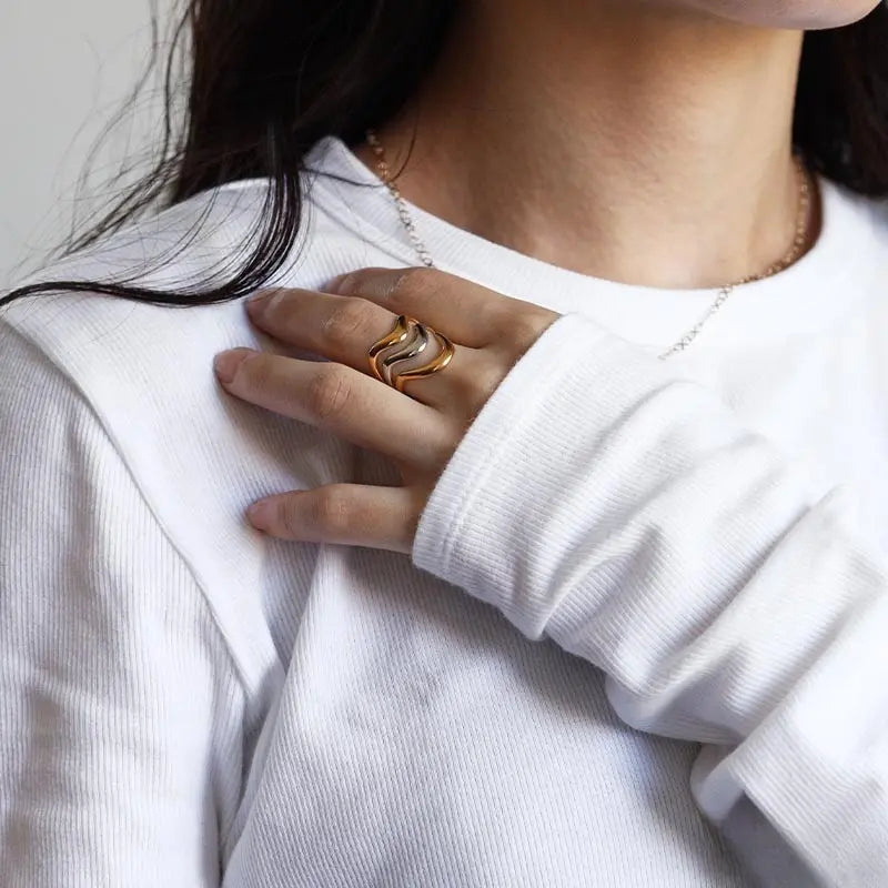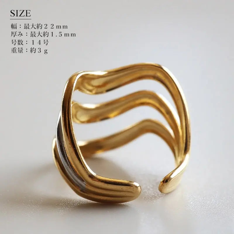 不規則に動く3本のラインが流動的なニュアンスリング。